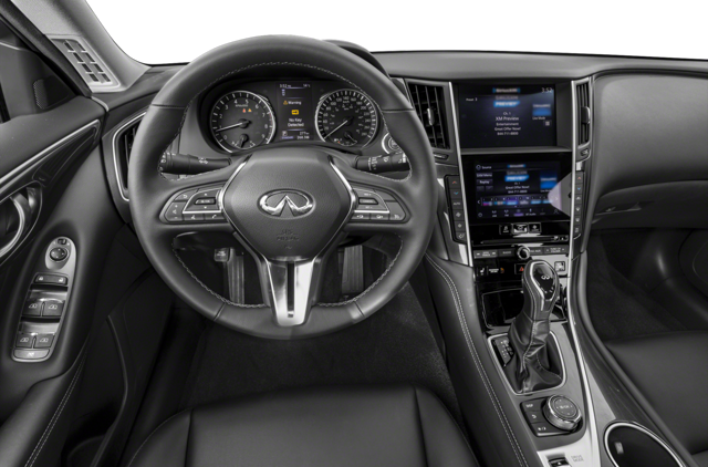 The 2024 INFINITI Q50's powerful engine options and well-tuned chassis make it a true driver's car. The Luxe and Sensory trims can accelerate from zero to 60 mph in around five seconds, while the Red Sport 400 trim can complete the same sprint in just 4.5 seconds. All Q50 models feature a smooth-shifting seven-speed automatic transmission and a choice of rear-wheel or all-wheel drive, depending on buyer preferences and driving conditions.