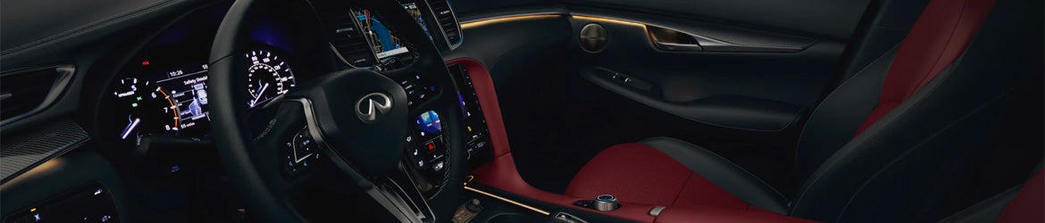 Inside, the QX50 offers a cabin designed around both driver and passenger comfort. Soft-touch materials and available leather appointments create an inviting space, while carefully placed controls make everyday use intuitive. Seating provides generous support for longer trips, and flexible rear seats help expand cargo capacity when needed. An advanced infotainment system keeps drivers connected and entertained, while thoughtful design details like ambient lighting add a touch of warmth. Practical storage spaces throughout the cabin support an organized drive, combining functionality with modern design.