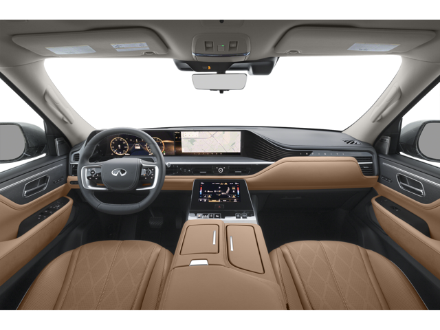 Inside the 2026 QX80, premium materials and thoughtful design create a refined luxury environment for all passengers. Available semi-aniline leather seating, open-pore wood accents, and customizable ambient lighting with 64 color options enhance the upscale feel throughout the cabin. Dual 14.3-inch displays integrate driver information and infotainment controls through the INFINITI InTouch™ system, while available Klipsch® premium audio delivers immersive sound quality. With seating for up to eight passengers and up to 101 cubic feet of cargo space, the QX80 offers flexibility for both passenger comfort and storage needs.